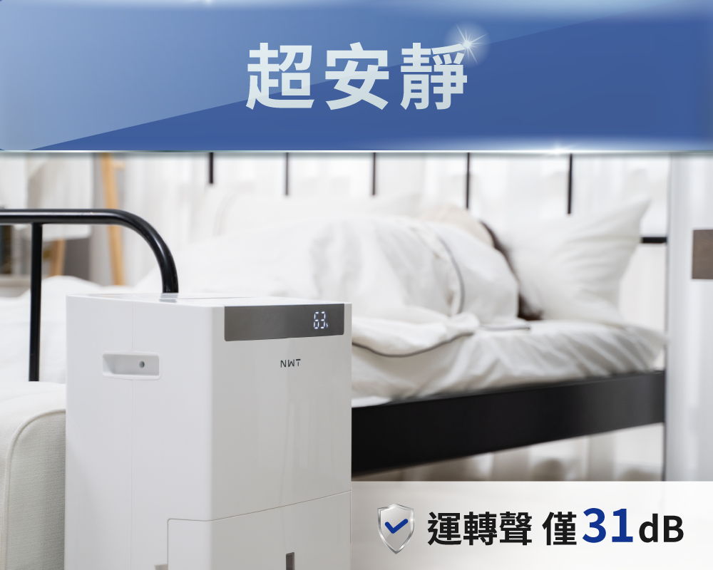 噓...人機共處不干擾!運轉音僅31分貝,比一般除濕機低約8-10分貝!