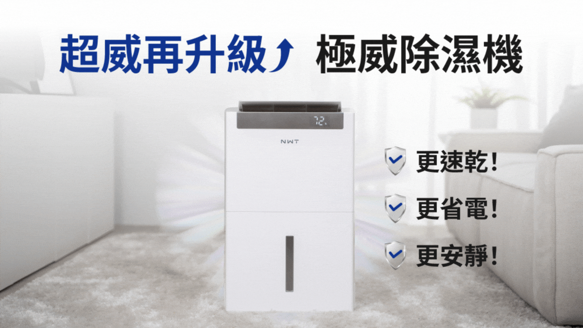 超大除濕量!18L/日極威除濕力、23坪空間極速乾爽,除濕又快又夠力!